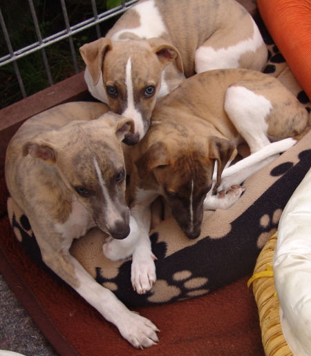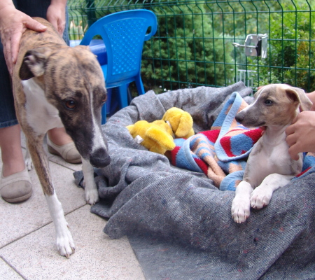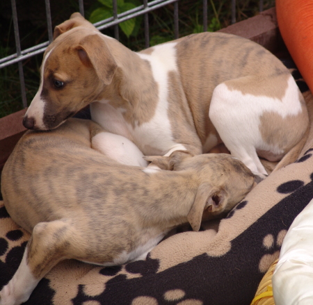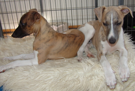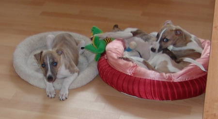 Etwas später berichtete sie mir, dass alles gut gegangen ist zwischen den beiden Whippets und sie schon gemeinsam auf dem Bett liegen und schlafen.