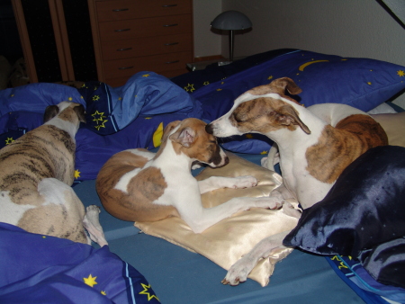 Gerade gestern, die Hunde liegen in ihrem Küchenkörbchen und schlafen, während ich an den Küchenwagen gehe, wo sich auch die Leckerchen befinden, sehe ich, wie Machu ein Auge riskiert (er hat das mitbekommen und hofft natürlich, auf ein schmackhaftes Extra). Aber, wo ist Marley? Eben war er doch noch da?! Ich drehe mich um und will gerade seinen Namen schmettern, da sehe ich ihn ganz brav hinter mir „Sitz“ machen, weil er – ganz klar – davon ausgeht, dass es nun an der Zeit für ein Leckerchen ist.