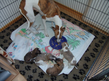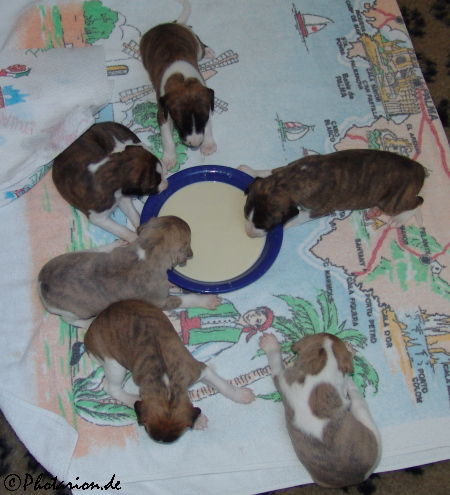 Die Puppies bekamen heute das erstemal Breichen, hm lecker!