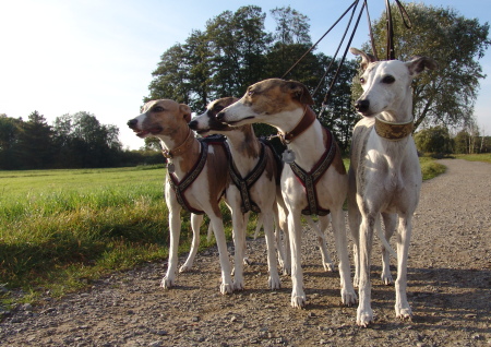 Eure 4 Whippetdamen sind doch eine Augenweide und dazu noch Natur pur, eine super tolle Mischung.