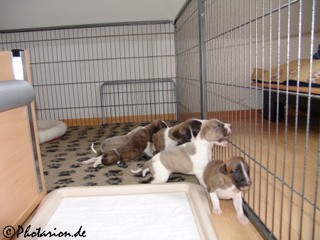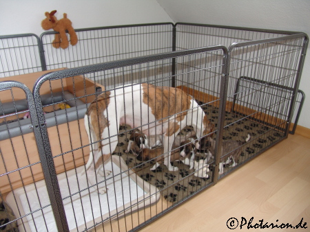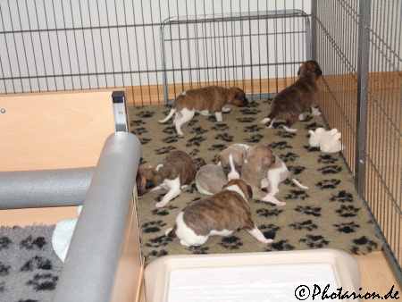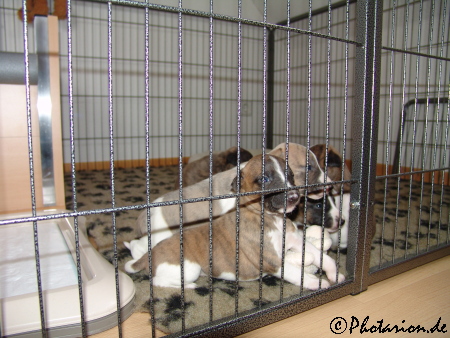 Heute hat es den Puppies schon besser gefallen, sie erkundeten mit schon recht forschen Schritten den Kennel.