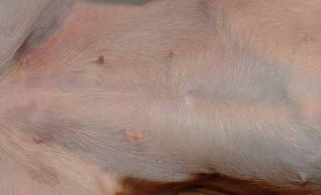 Ihre Zitzen haben sich etwas vergrößert und sind etwas gerötet.