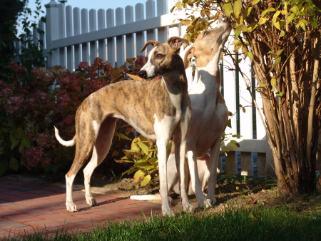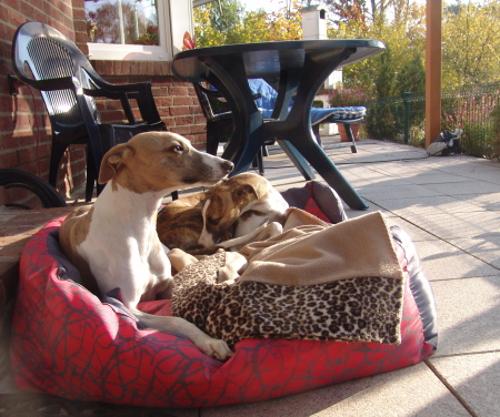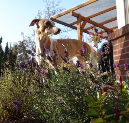 Frühlingshaftes Wetter, so dass sich die Whippchen sogar nochmal in die Sonne legen konnten. Der Lavendel und die Geranien blühen noch im Garten. Die Blätter der Bäume und Sträucher glitzern bunt im Sonnenlicht.