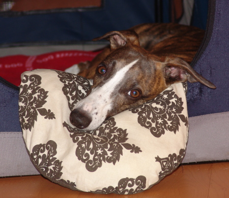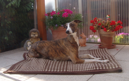 Floppy im September bei uns zu Besuch. Wie man sieht, könnte er glatt als Model durchgehen. Jedenfalls lässt er sich gerne fotografieren. Zum Nickerchen liegt er am liebsten in unserem Kennel.