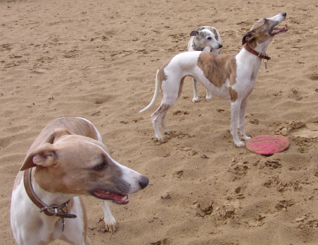Ich habs ja schon im Kommentar des vorhergehenden Beitrags geschrieben: Was braucht das Whippetherz mehr? Weite, austoben, spielen, Abenteuer! Natürlich abgesehen von einem (oder mehreren) kuscheligen Platz (Plätzen), natürlich auch im Bett und Zweibeinern, die ihnen total verfallen sind und deren höchstes Ziel es ist, Whippchen nach Strich und Faden zu verwöhnen.
