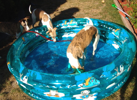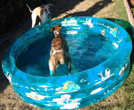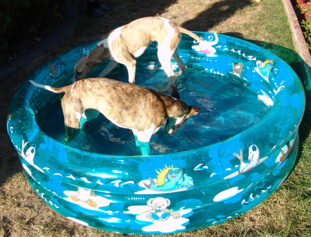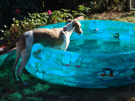 So machten auch wir das Beste draus. Längere Spaziergänge sind bei dieser Hitze sowieso gestrichen und so hielten wir uns im schattigen Garten oder im Haus auf. Einen großen Bewegungsdrang hatten selbst die „Joungstars“ Sony und Turini nicht. Erst nach der Erfrischung im Minipool kamen sie „endlich“ wieder in Fahrt.