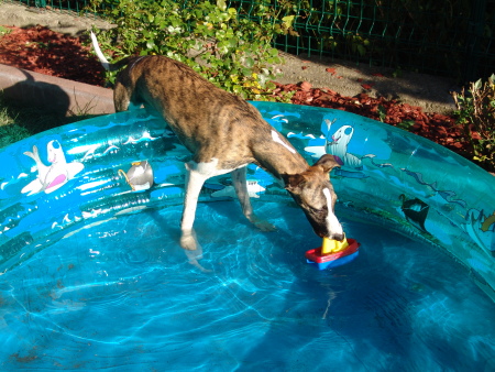 Ist das herrlich! Und selbst im Pool sind die Mäuse mit Spielzeug versorgt. Wenn ich das nächste Mal auf Welt komme, melde ich mich schon mal als Hund bei euch an.