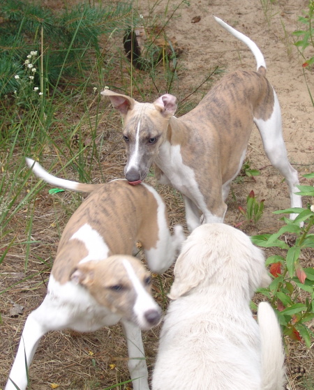 Da Achat nur Whippetwelpen kannte, war es für sie etwas ganz Neues und Aufregendes das Gesichtchen einer englischen Bulldogge oder das wuschelige Fell eines Golden Retriever Welpen zu sehen.