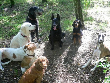 Das tut mir aber leit auch von deiner Cosine Macy eine gute Beserung sag mal auf dem letztem Bild was ist das für eine Rasse der dritte Hund hinter dem Cocker der siht so ein bischen aus wie ein Windhund oder teusche ich mich da?